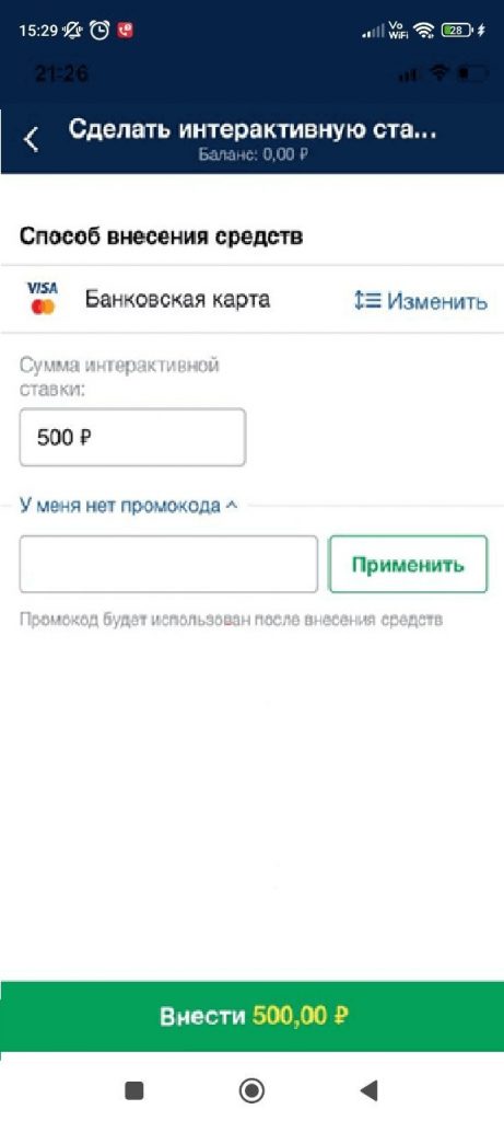 - Внести депозит на сумму от 500 рублей.